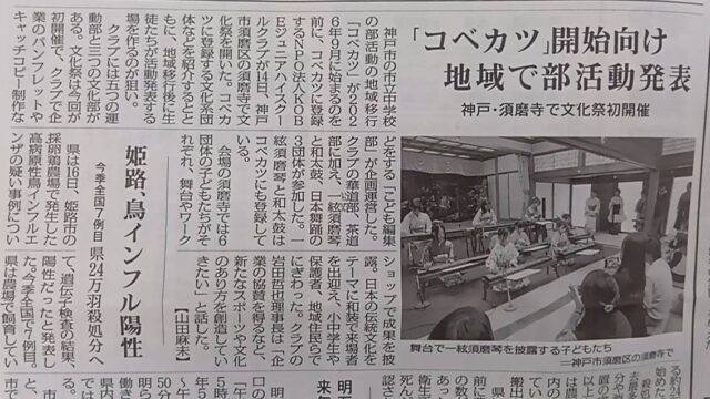 活動報告 地域で行う、こども達主体の文化祭の取材に感謝❣ 『神戸新聞』『毎日新聞』 2025年12月20日 KOBE J.H.S.C 事務局 https://kobe-jhs.club/wp-content/uploads/2023/06/kobe-jhsc-NPO.png KOBEジュニアハイスクールクラブ – 中学生の部活動 神戸の地域部活動・クラブ