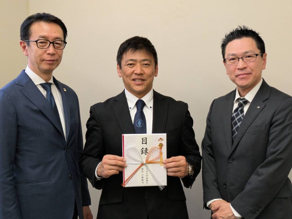 今年度もKOBE ジュニアハイスクールクラブのパートナー企業であるホームドライ様が、四国銀行様の『SDGs私募債(地域応援債)』をご活用くださり、今年新設した農業部への用具等のご支援を賜りました。いつもご支援をいただいておりますホームドライ様、またSDGs私募債のご支援、物品購入、寄贈式まで行っていただいた四国銀行様に大変感謝申し上げます。これからも、こども達の明るい未来のために活動していきます✨